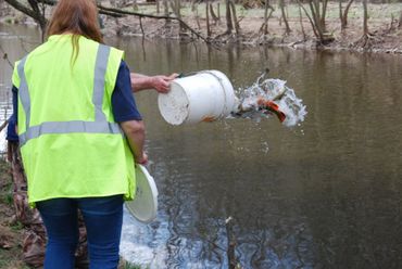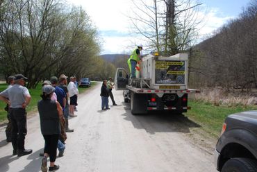Busy Day at Mill Cove today -- these little guys were napping 30 feet off the ground, no sign of mama, but had to have been close. PA Fish Commission and volunteers stocked Mill Creek with some truly big trout.